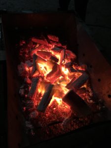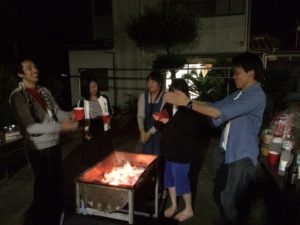 今日の晩ご飯はお外でバーベキューです☆お肉や魚介類、それと焼きそばを調理して出来立てのアツアツを頂きました!燃え上がる炎と格闘しながら料理してくれた調理班、どうもありがとう><おいしかったです!!